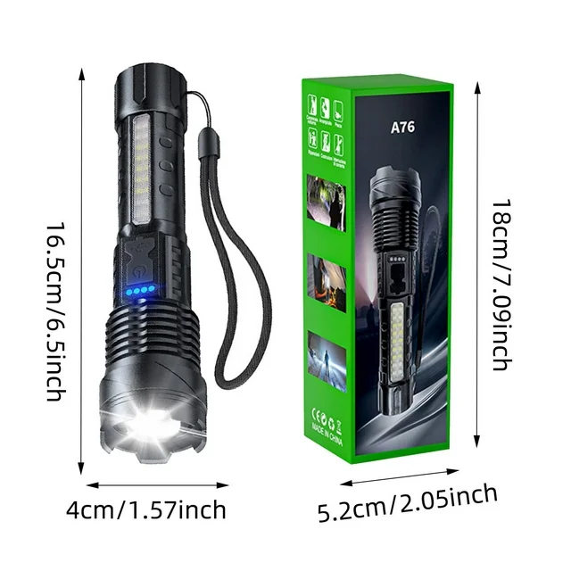 ➚ سطوع لا مثيل له: أطلق العنان للسطوع الفائق مع مصباح يدوي بقوة 1500 لومن، والذي يتميز بمصباح LED عالي يضيء محيطك بوضوح ودقة شديدين.
